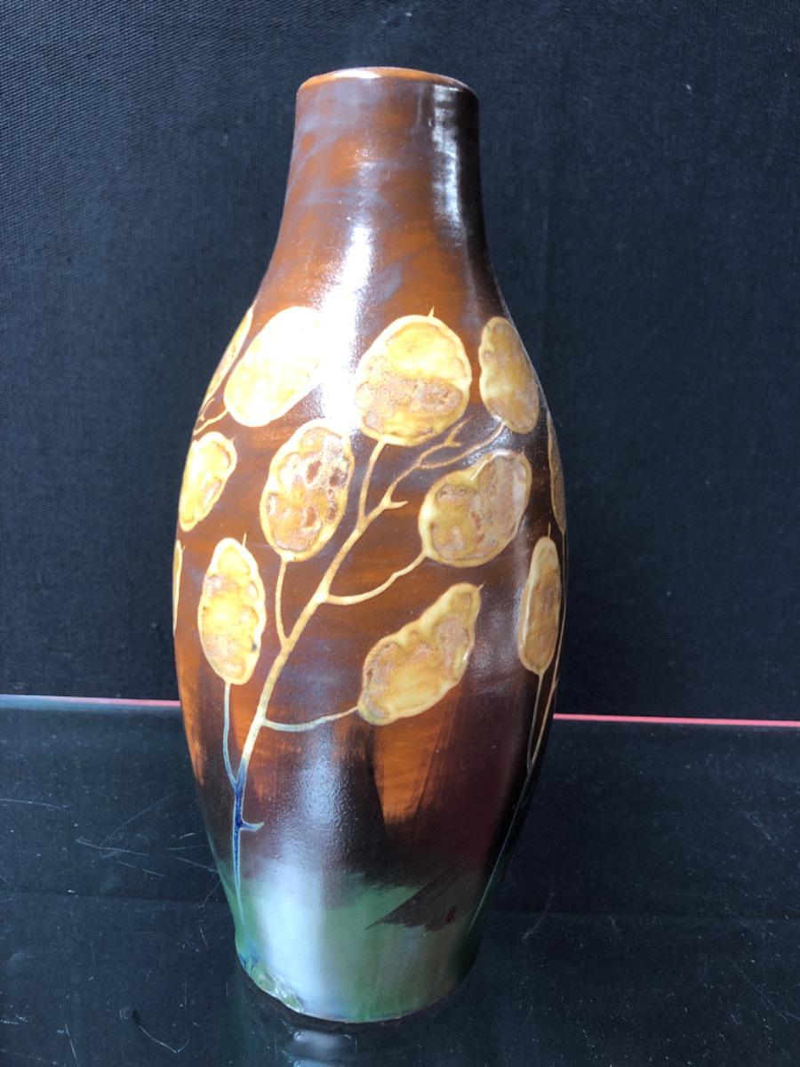 Grès Keramis Boch, décor feuillage sur fond brun, 26cm, ca 1920, ref d652 petite restauration sur base