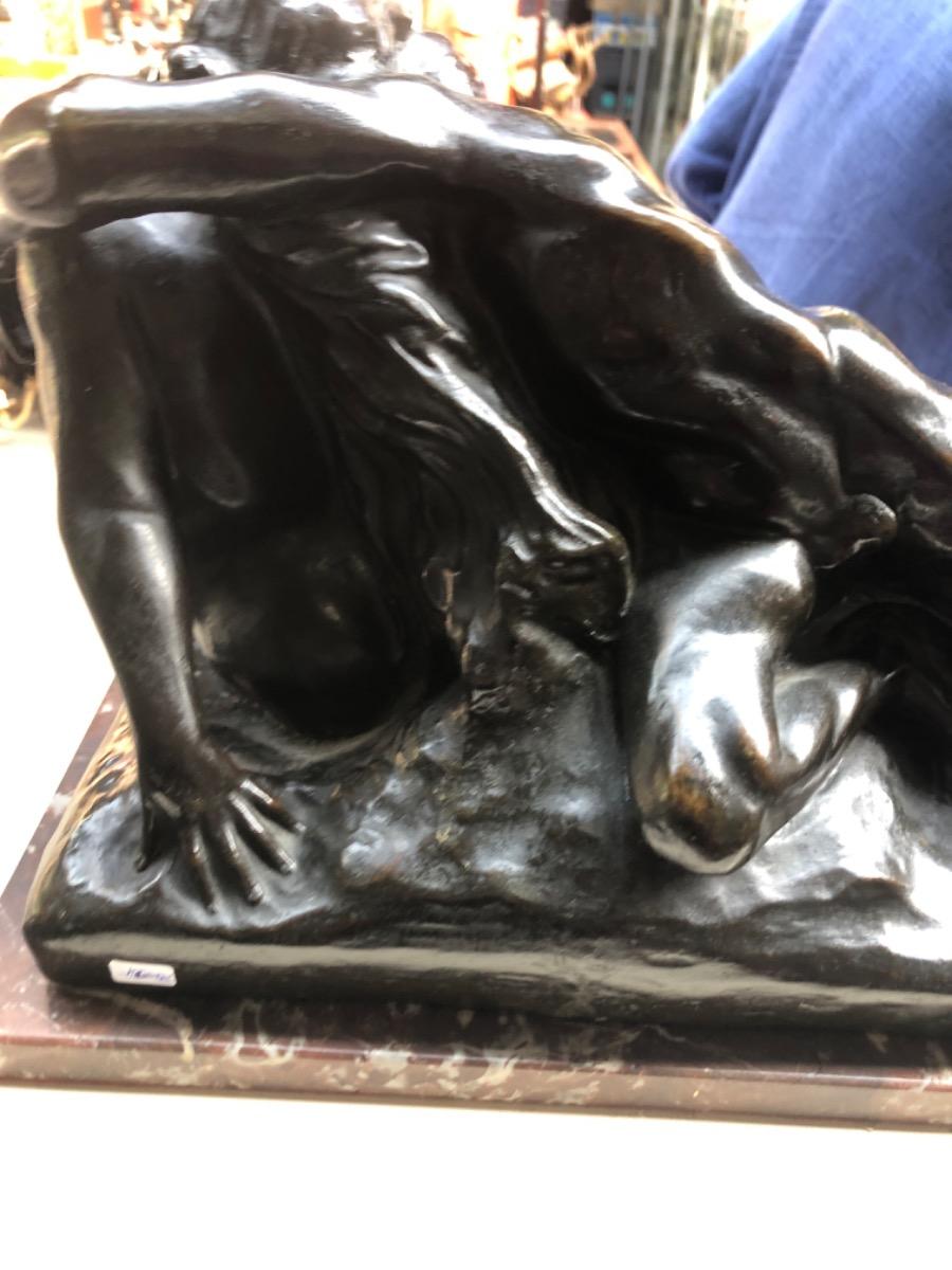Jef Lambeaux sculpture en bronze Le satyre et la nymphe 30cmx40cm, patine médaille ca 1900 signé sur la base