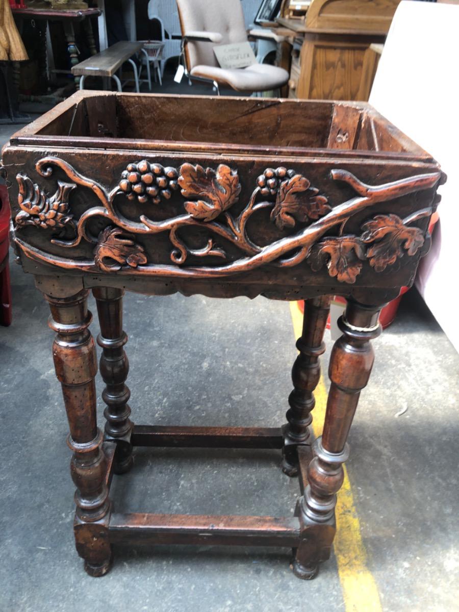 Jardinière en noyer à decor de cep de vignes , 18 eme, 80x40x29cm bel état de conservation