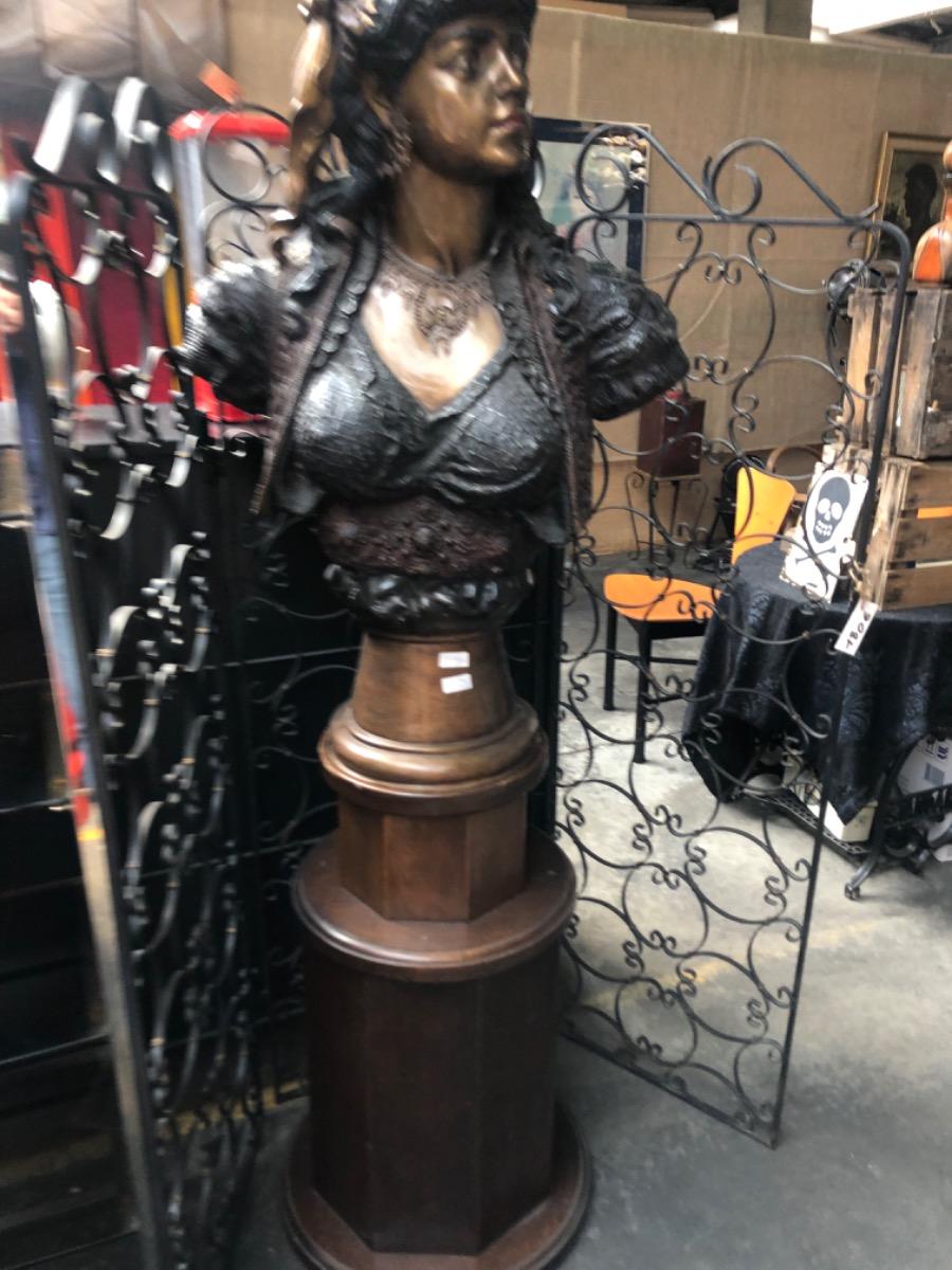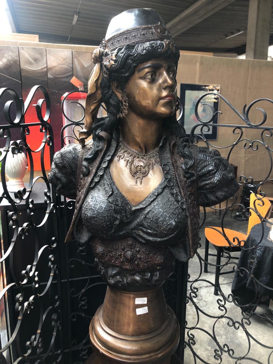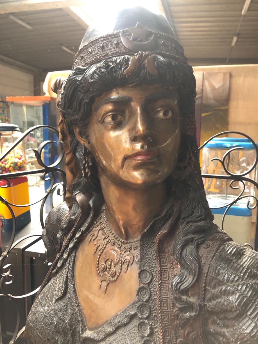 Sculpture en bronze, dame du Moyen-Orient, bellepatine médaille, vendue avec socle en bois, ca 1880,