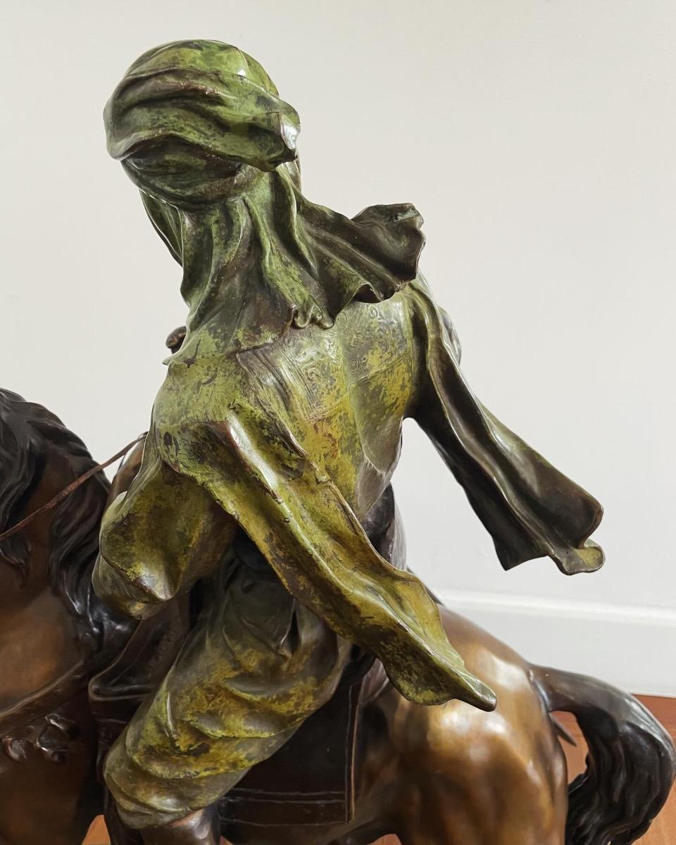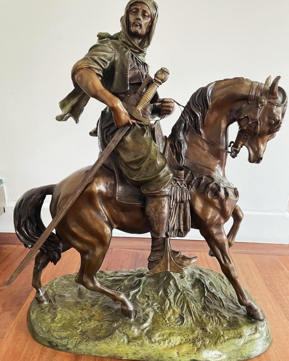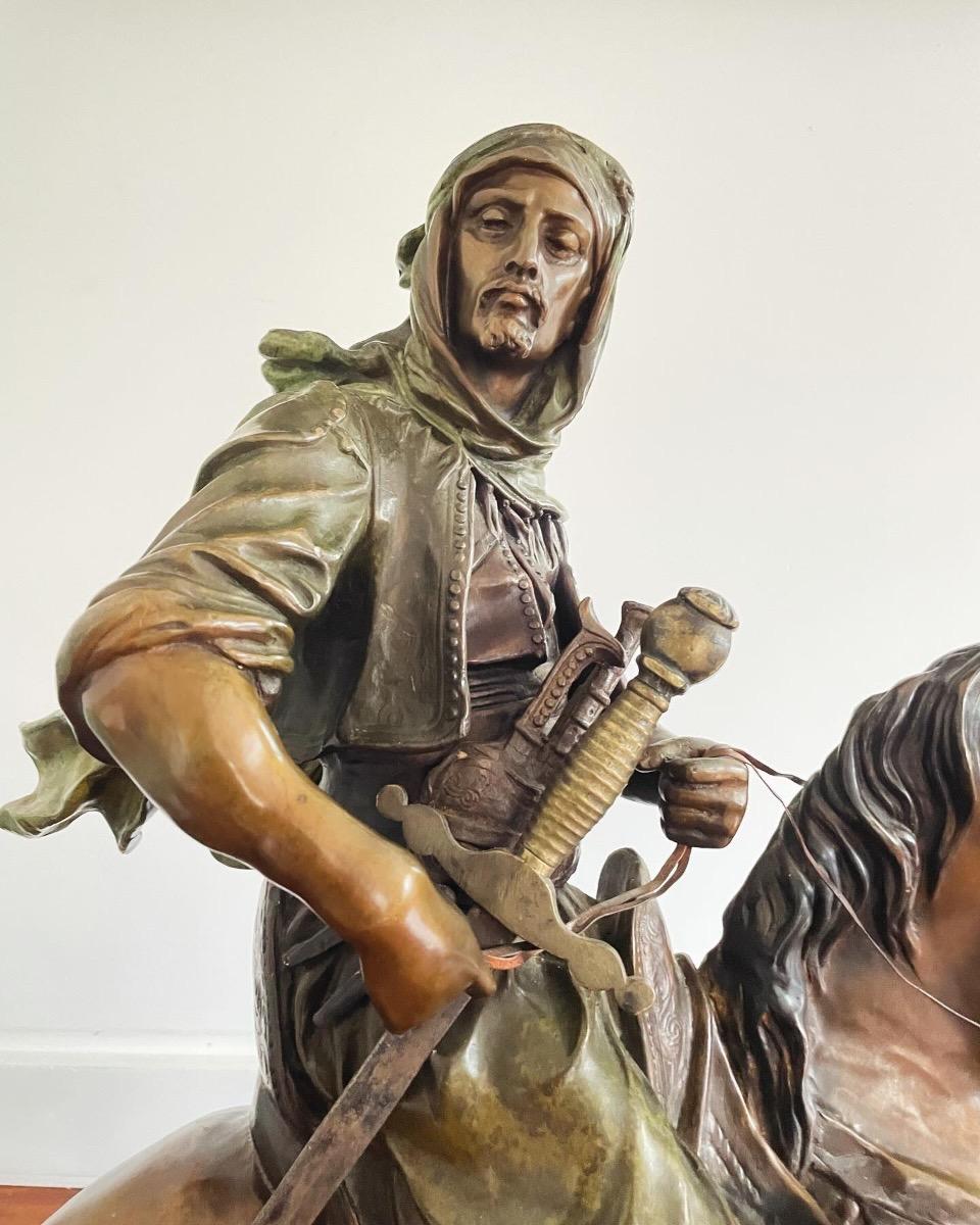 Antoine-Louis Barye, cavalier bédouin, grand bronze polychrome, signé sur sa base, ca 1900, dim: 69x56x29cm