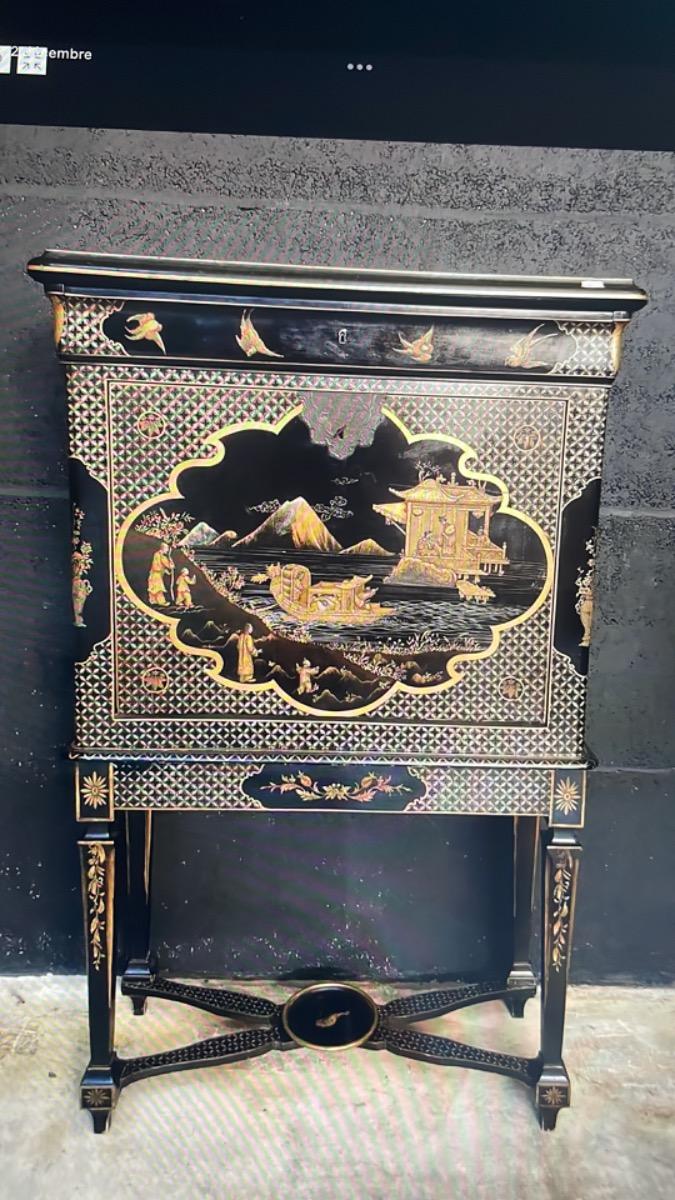 Cabinet en bois sculpté à décor de chinoiseries avec tiroir supérieur en doucine sur piétement style LXIV