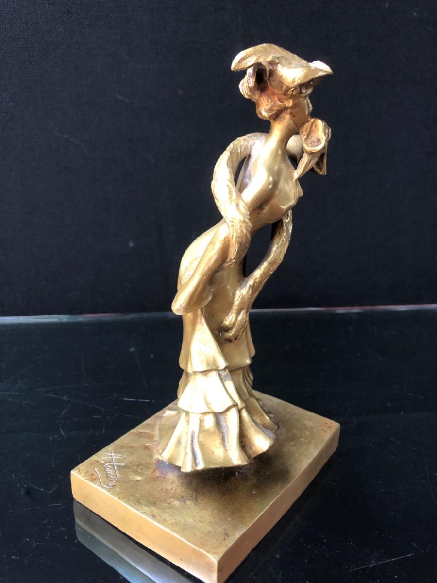 Sculpture en bronze « Elegante » Belle époque de Abel Landry patine mordorée H. 20 cm