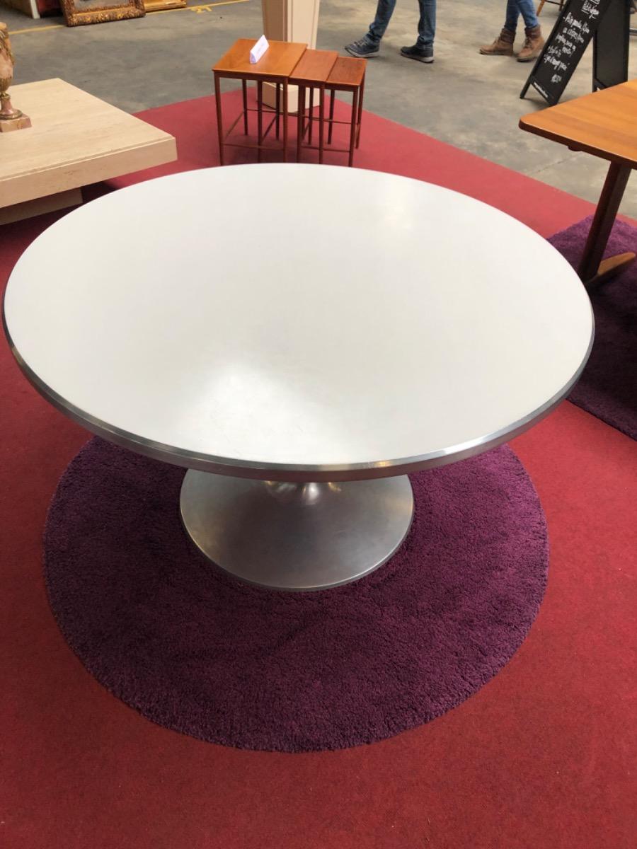 Table Poul Cadovius pour France & Son, aluminium et melaminé, ca 1960, diam. 120cm bel état
