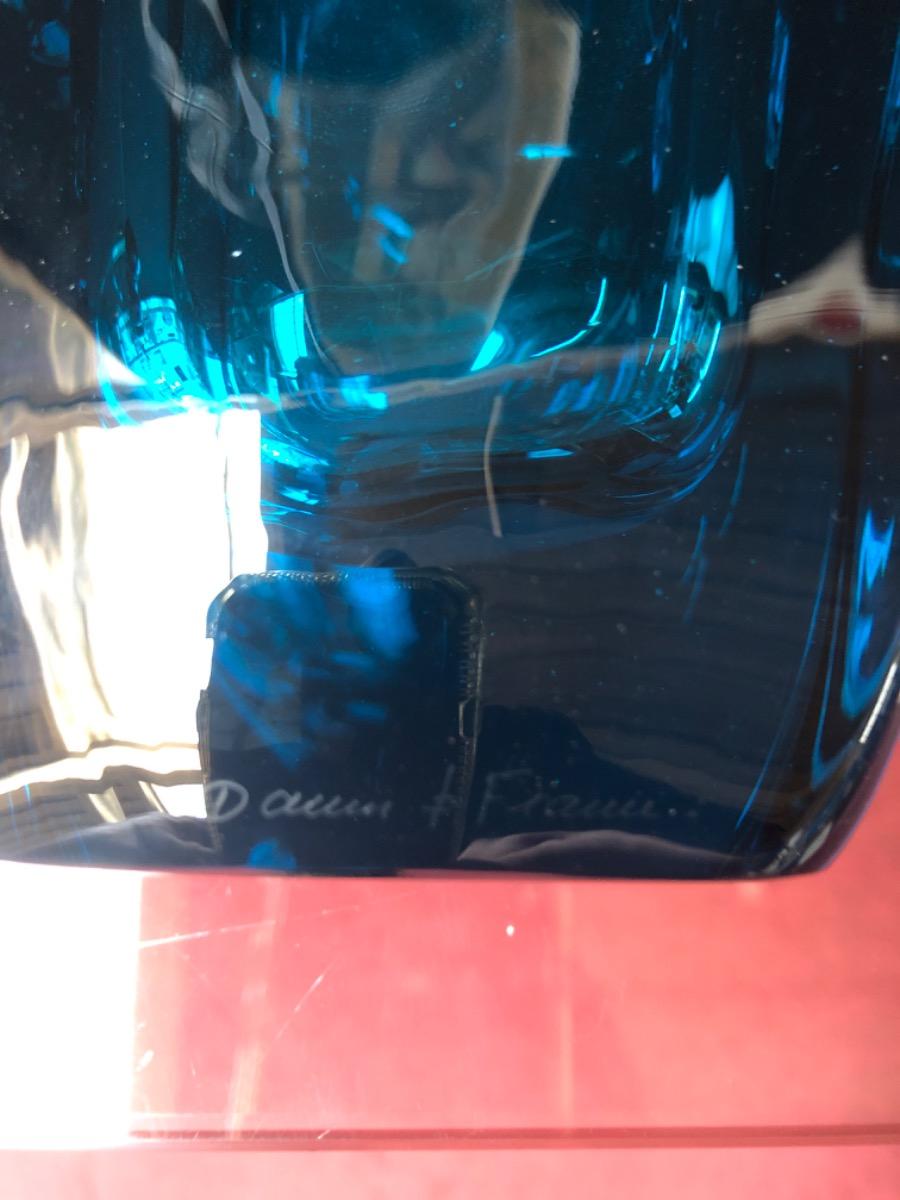 Tres beau vase en cristal DAUM couleur bleu 17cm signe sur sa base bel état