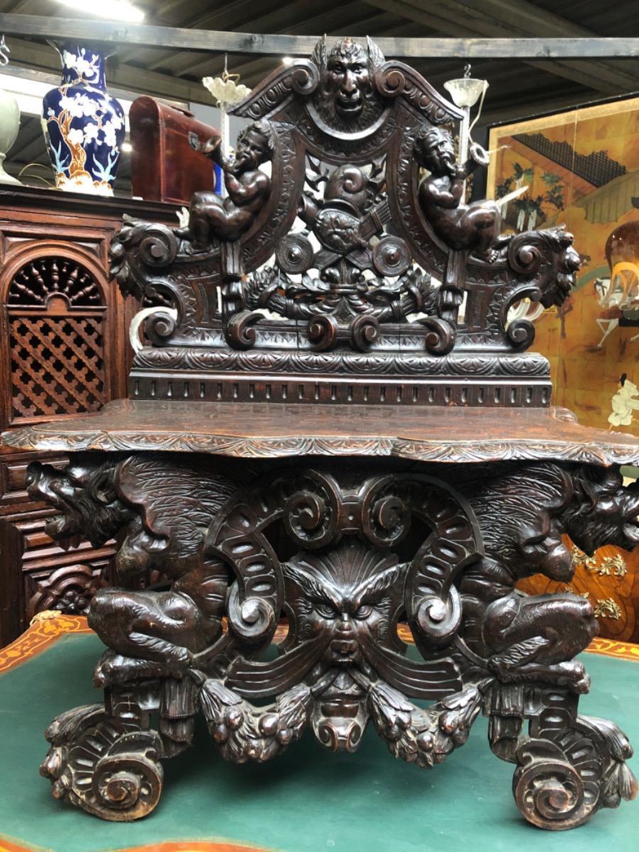 Banc italien neo.renaissance italienne en noyer 125x98x50, bel état conservation